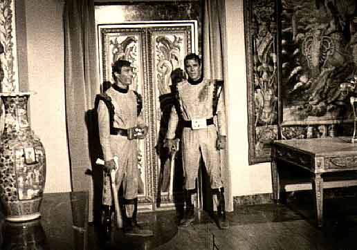 KHS: Der Verlag hatte mich zwar nach Rom geschickt, um die Verfilmung zu überwachen, aber letztlich hatte ich kaum Einfluß; die Bauten, die Modelle - alles war schon fertig, als ich im Studio eintraf. Als ich den Kugelraumer, übrigens handwerklich ein sehr gutes Modell, begutachtete und zu Antonio Margheriti (einem der Produzenten) sagte: "Was soll das denn sein, so ein Raumschiff kenne ich ja gar nicht bei Perry Rhodan?!", Fuhr mich dieser barsch an: "Das brauchen Sie auch nicht zu kennen! Die Hauptsache, es sieht gut aus!"